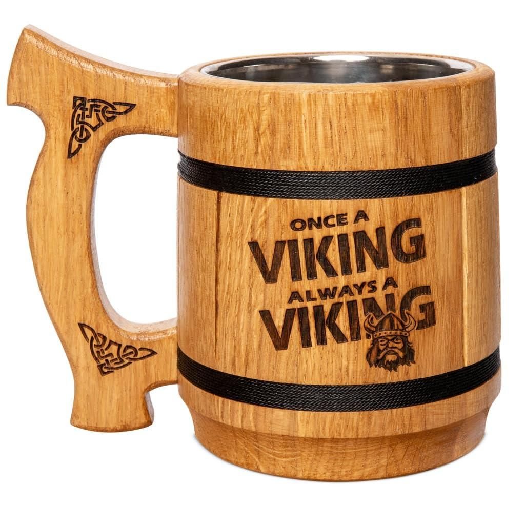 4.viking wood carving mug: the wooden beer mugs are durable and built to last. with special engraving "once a viking always a viking", this cool mug is one of the best vintage gifts.