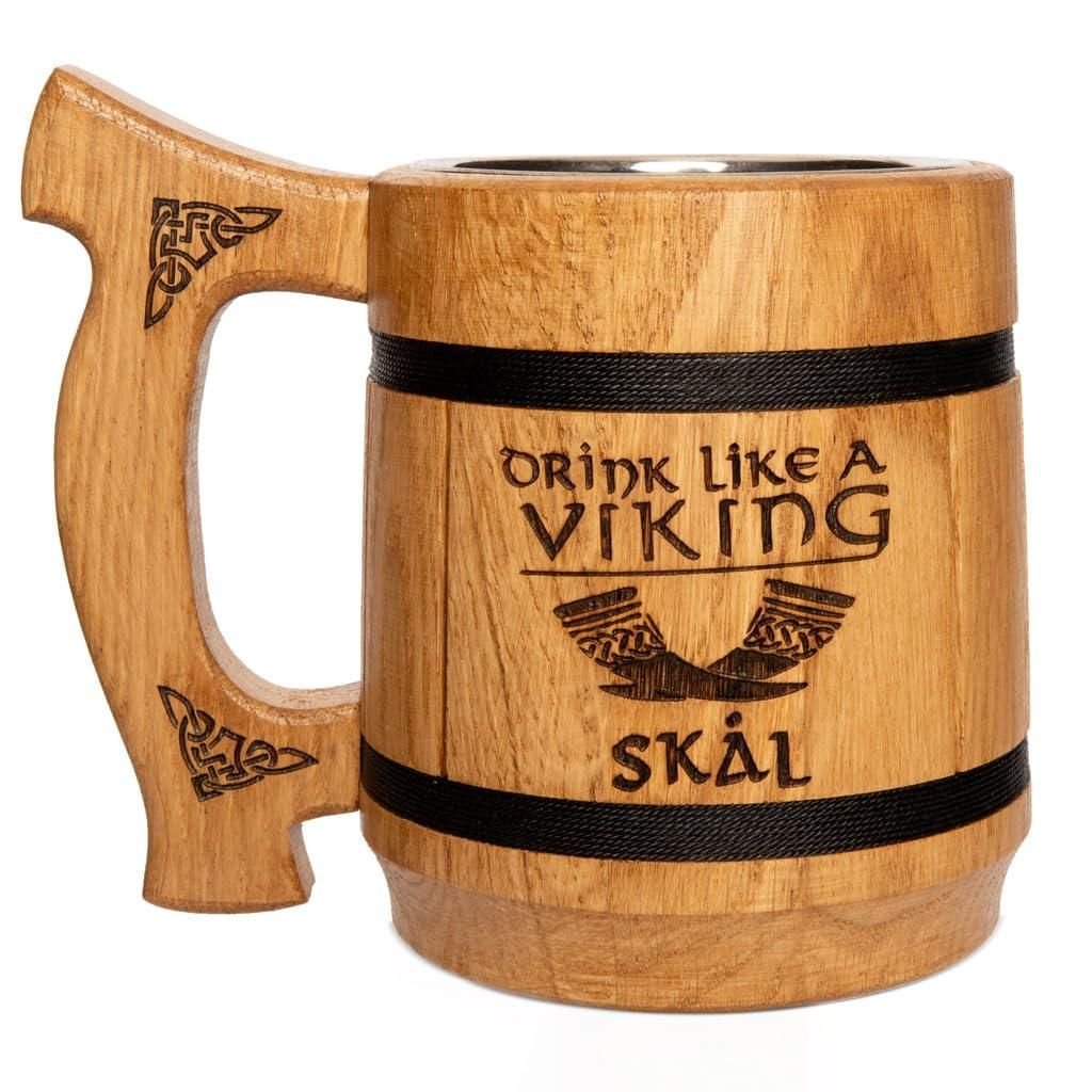 4.wooden bar cup: the viking decorations mug is durable, reliable, and built to last. with special engraving "drink like a viking", this cool decor cup is one of the best beer mug for dad.