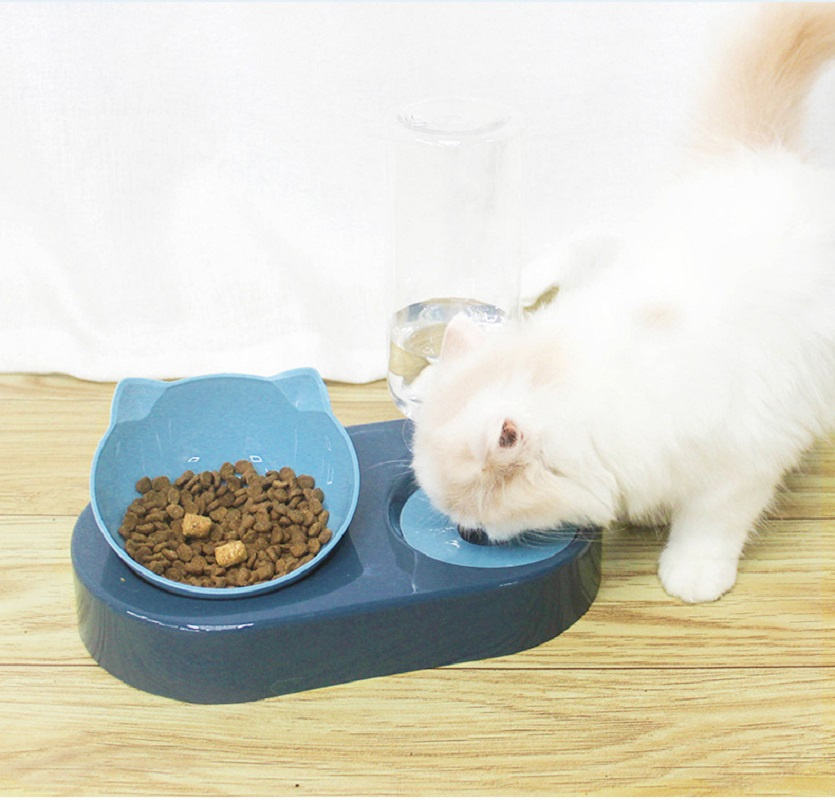 2.Automatic water dispenser with 15° Tilted designed food bowl makes pets more comfortable and convenient to eat, large oblique rim reduces cat food dropping. This design protect the pet's cervical spine and help release the pressure on the pet's neck which helps to avoid future problems with the spin