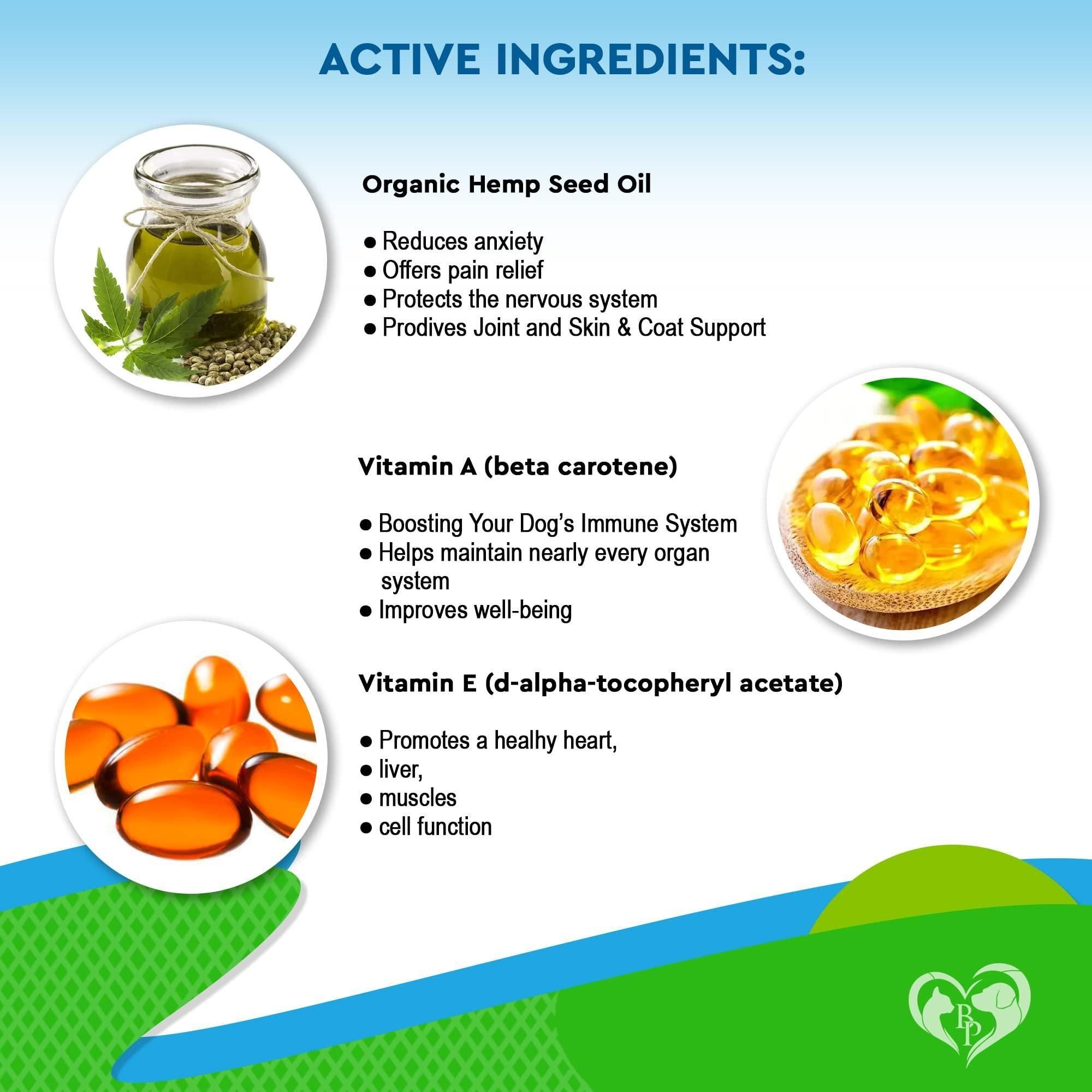 1.vet-recommended to keep your dog calm + relaxed - pet calming anti anxiety & stress releaf hemp products have been vet-reviewed and are vet-recommended to have a full spectrum oils effect on your pets nerves, support brain function and maintain a calm aggression. this unique product is a calming treats for cats and dogs, it provides deep sleep for your pet, soothes nerves and causes relaxation leading to sleep