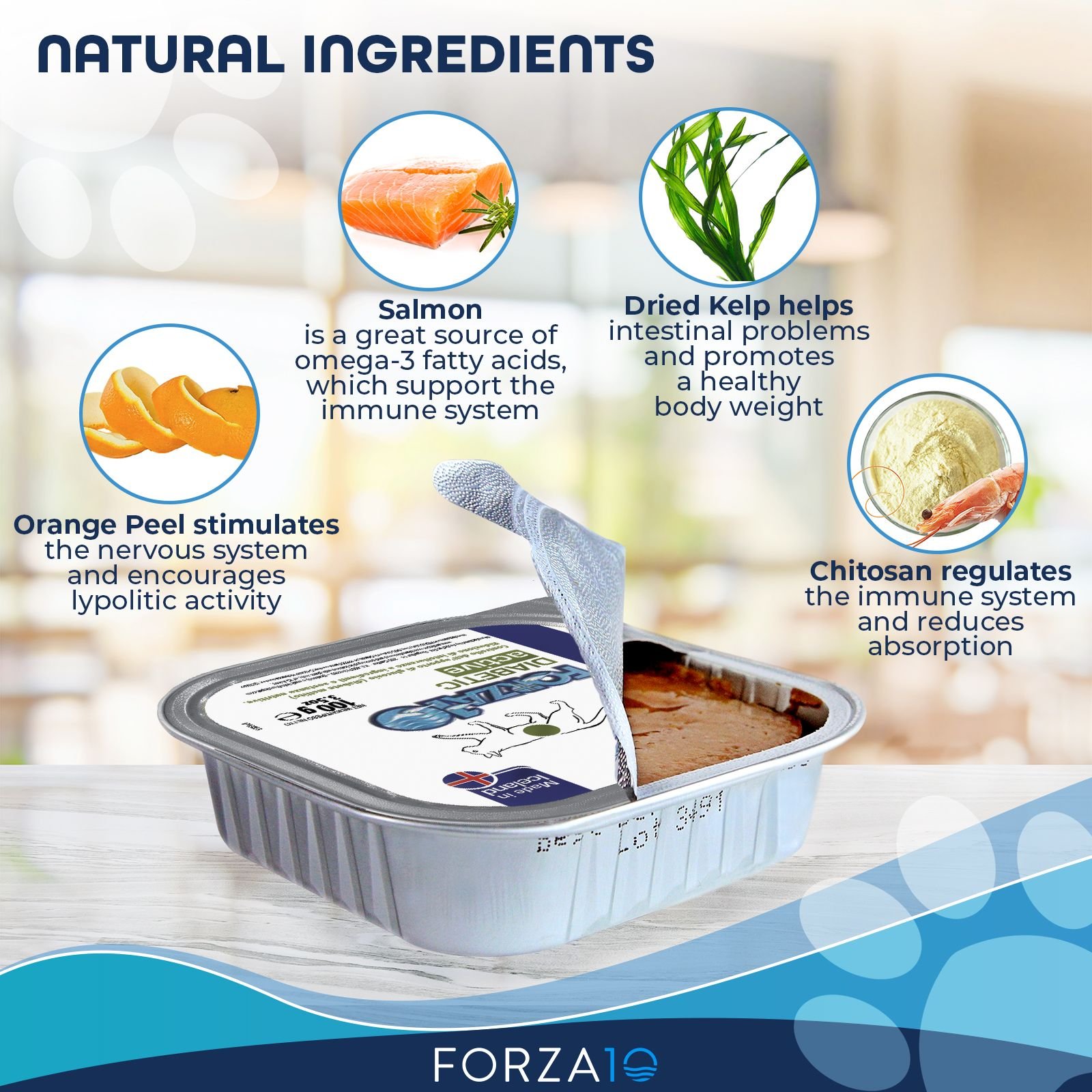 Water Sufficient For Processing, Salmon, Chicken, Chicken Liver, Hydrolyzed Fish Protein, Minerals (Potassium Chloride, Dicalcium Phosphate, Calcium Carbonate, Zinc Amino Acid Chelate, Ferrous Bisglycinate Chelate, Zinc Sulfate, Manganese Sulfate, Potassium Iodide), Guar Gum, Cassia Gum, Locust Bean Gum, Salt, Cysteine, Xantan Gum, Taurine, Vitamins (Vitamin E Supplement, Thiamine Mononitrate, Pyridoxine Hydrocloride, Vitamin D3 Supplement, Biotin, Folic Acid) Dried Kelp, Bitter Orange, Chitosan, Starch.