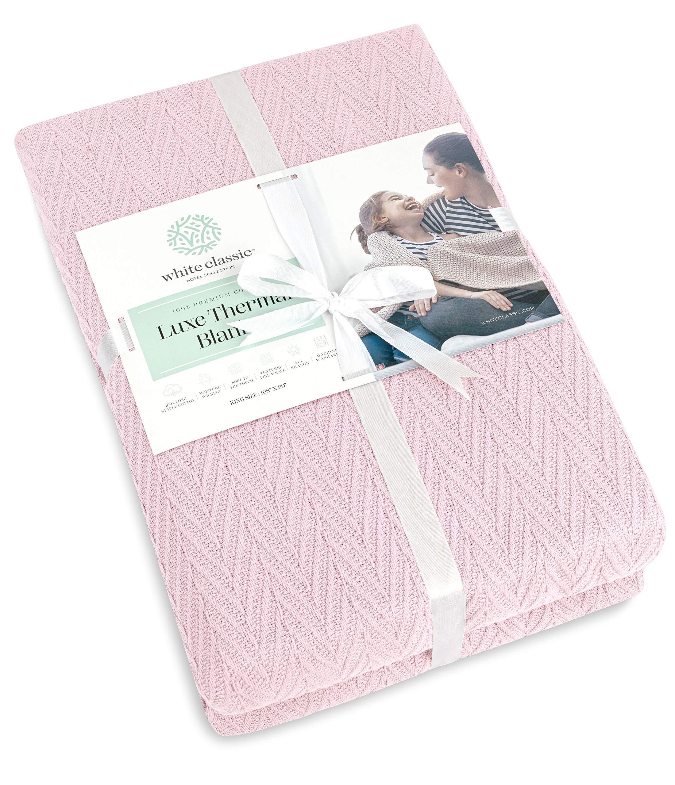 Home > Queen Size Blanket for Bed 100% Cotton Blankets Soft and Breathable 410Gsm Waffle Lightweight Summer Blanket 90x90 Inches Pink