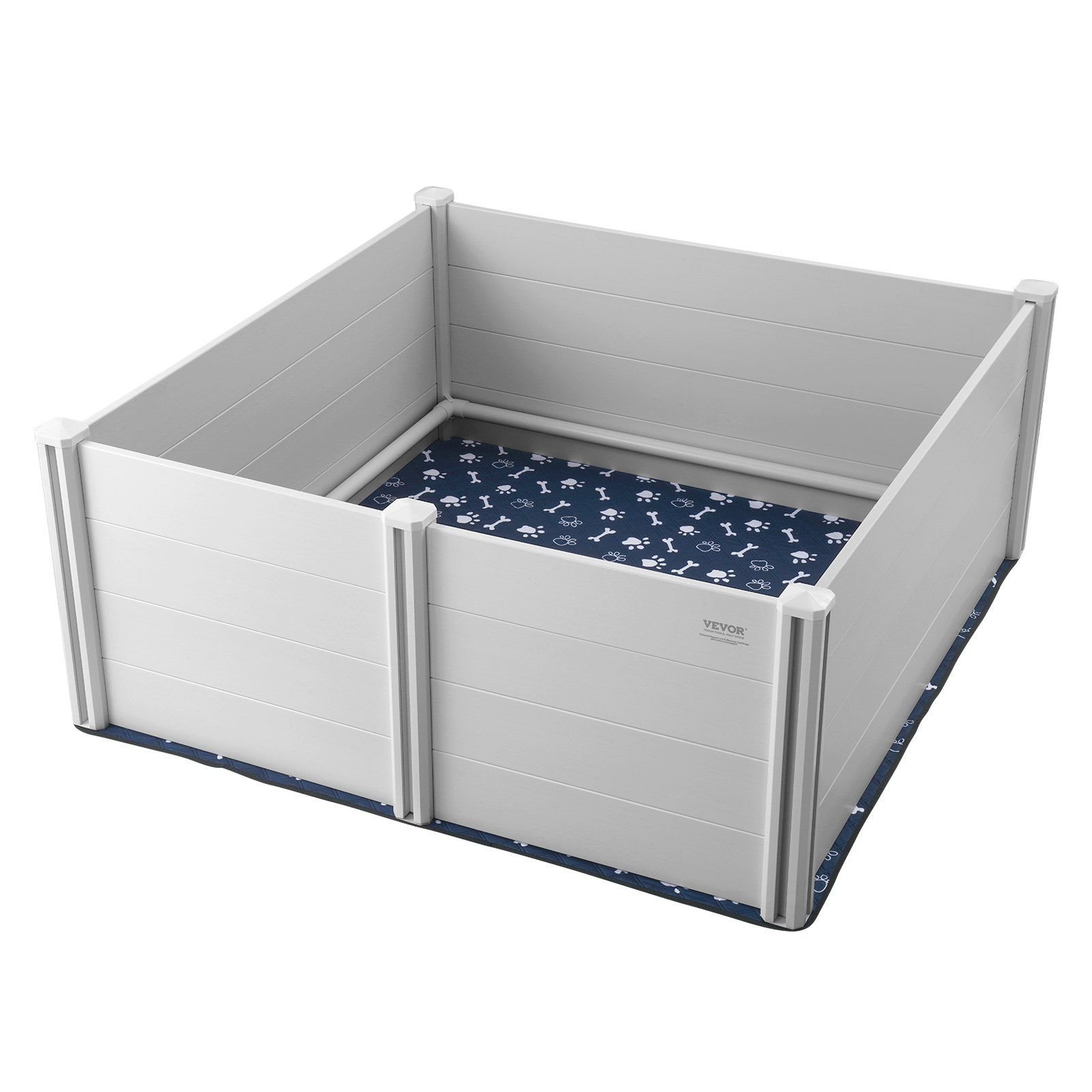 With a height upgraded to 24 inches, this whelping box with rails prevents mother dogs from jumping out when all panels are in place. Velcro secures the pee pads to the corners, ensuring the walls remain stable. The interlocking panels use convex cuts to ensure a snug fit without loosening.