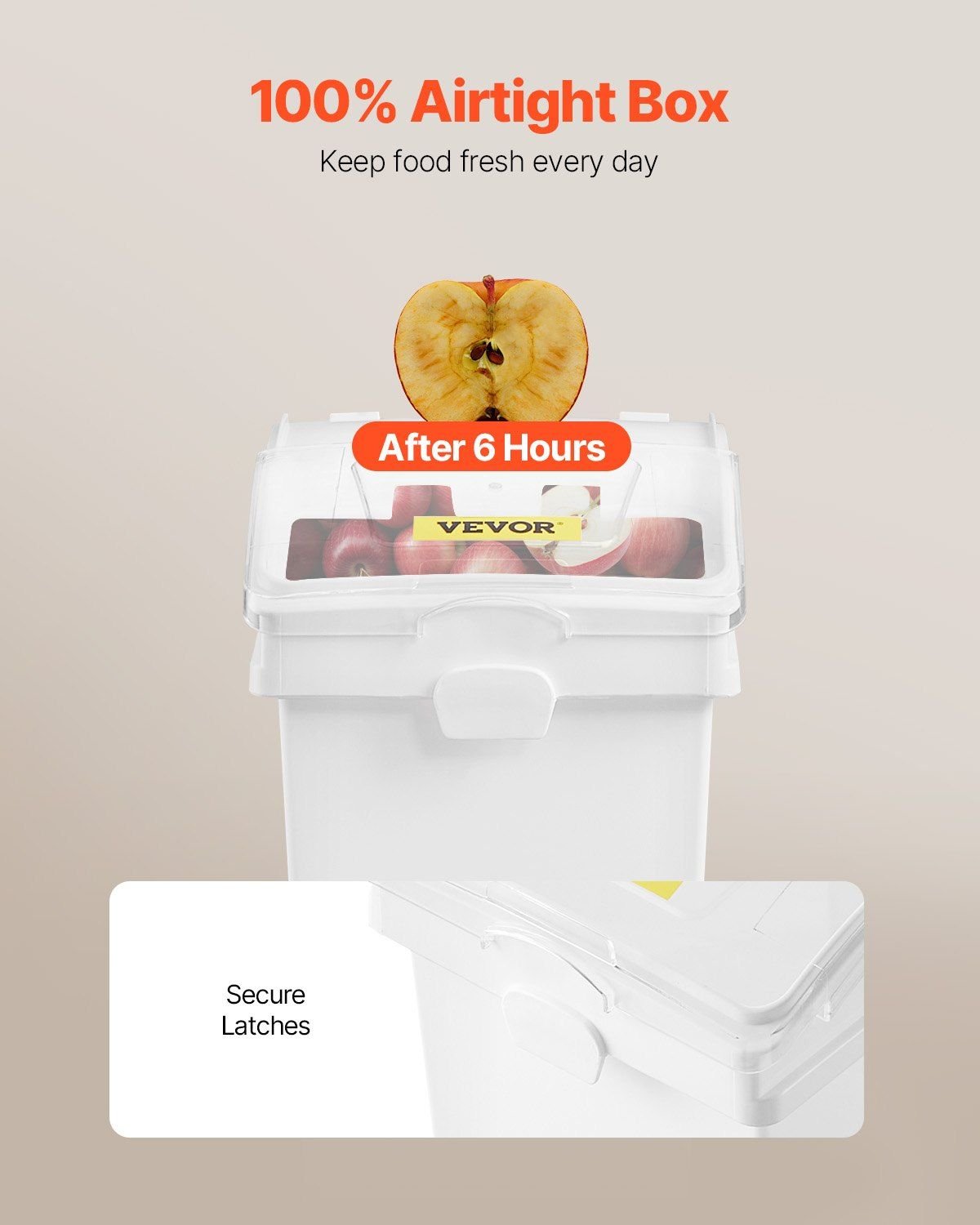 The kitchen ingredient bin includes tight sealing buckles to ensure food remains dry.